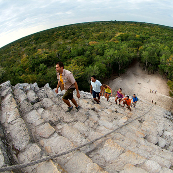 Visitarás también y tendrás la oportunidad de subir a una de las pirámides más altas de la región en Coba el cual te impactará con su vista panorámica de toda la península.